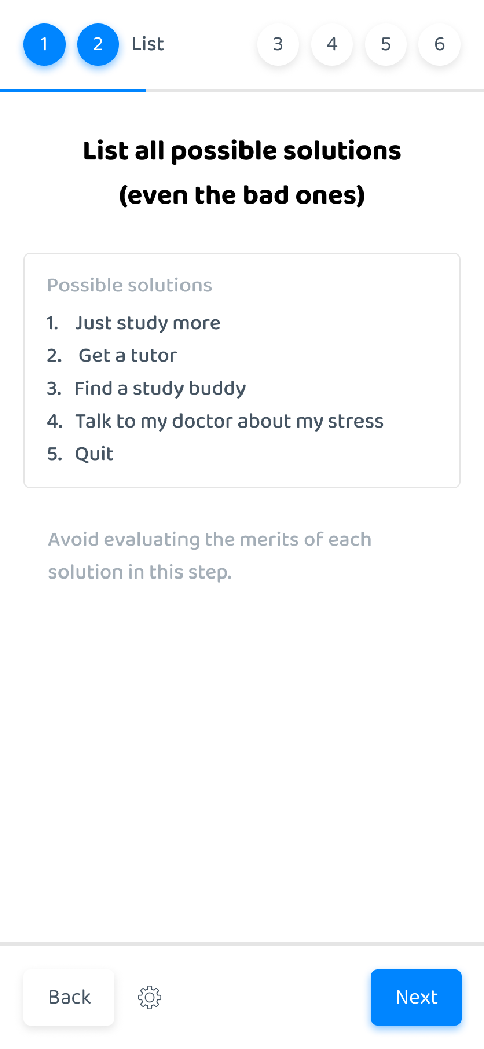 Working through your problems is a six step process. I really like wizards and this user experience fits really well with the structure problem solving process.