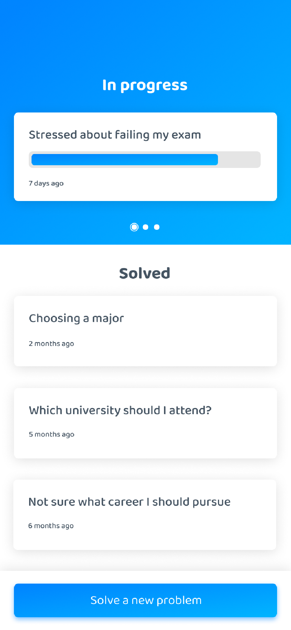 To give a nice separation between problems that have been solved and problems that we are currently working on, we adjust the dashboard with visual queues.