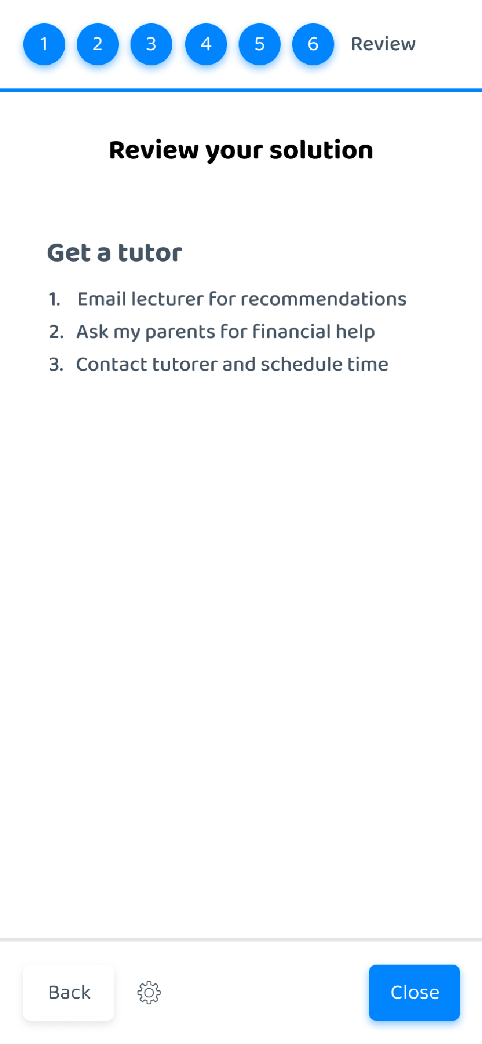 Lastly, we create a review page of the solution and the steps to get there